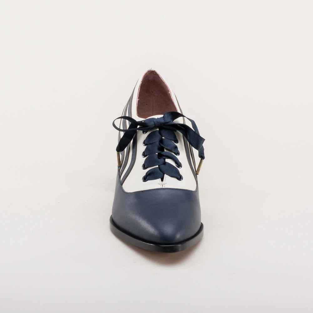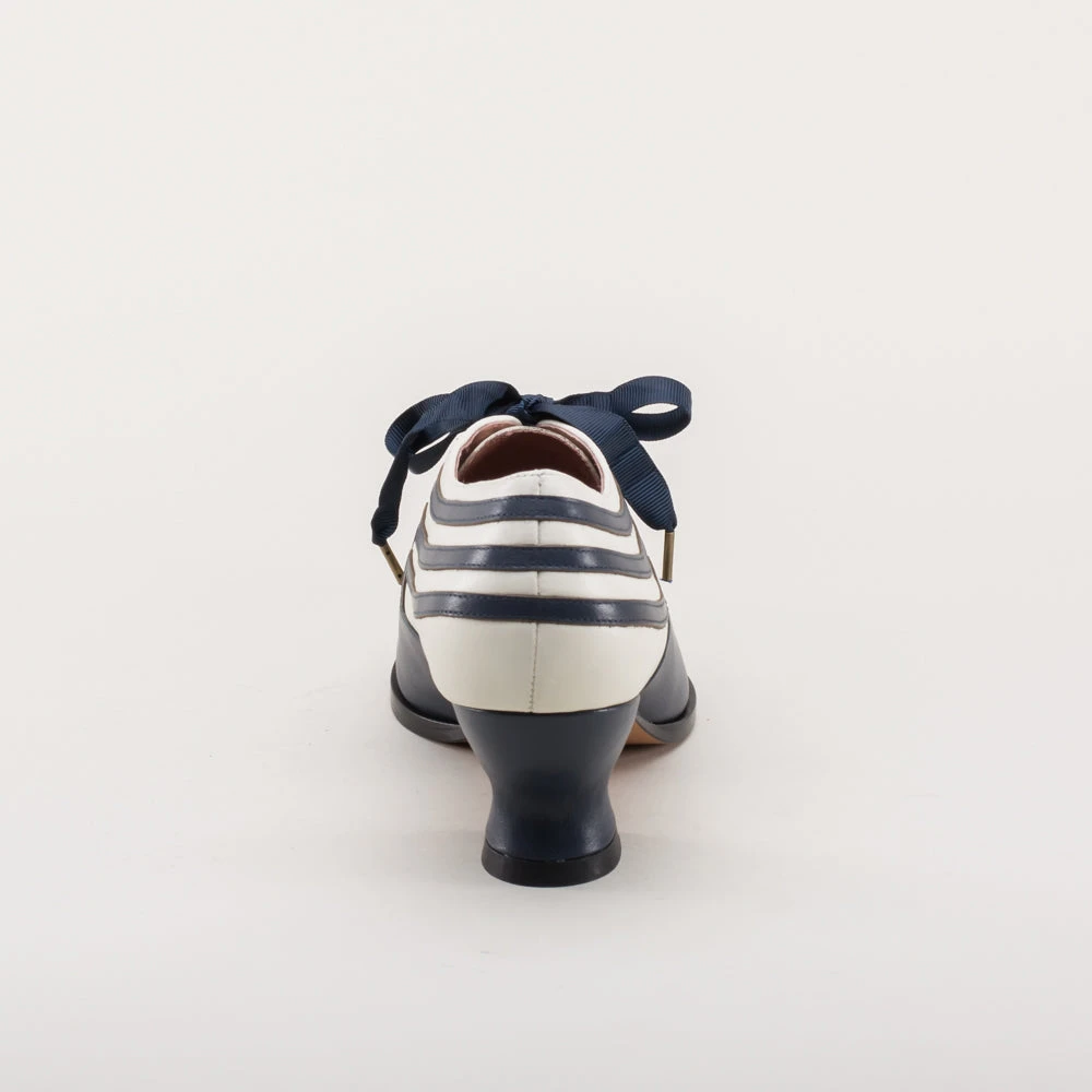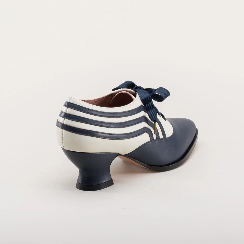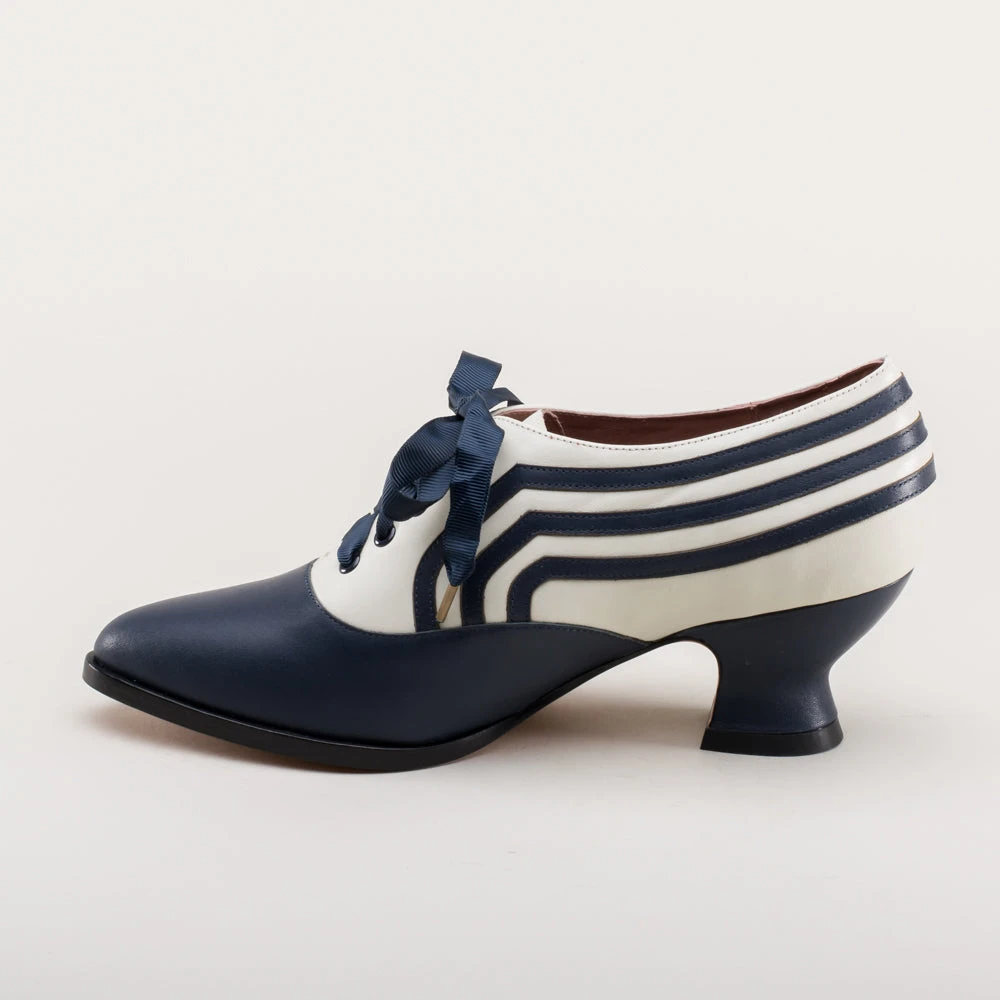 These attractive lace-up shoes have all the style and sass of footwear from c. 1900 through the 1920s and will keep you on your feet and comfortable all day, whether you’re attending historical costuming events or walking the streets of New York City. Bernadettes feature our sturdy 2 inch / 5 cm French heel, welted hard-wearing leather soles, pointed toes, and an adjustable lace-up closure, plus all that style with eye-catching contrast stripes on all-leather uppers. Delicious!