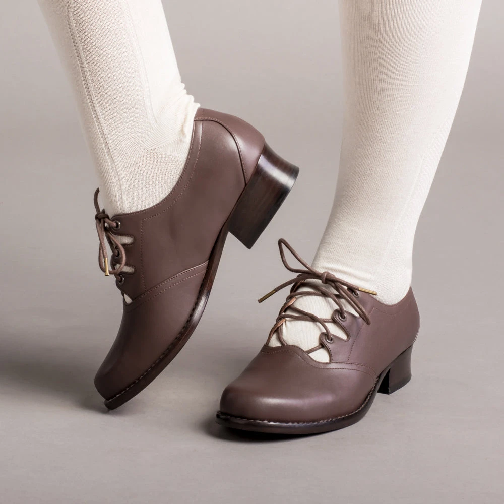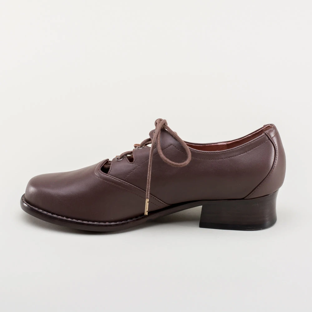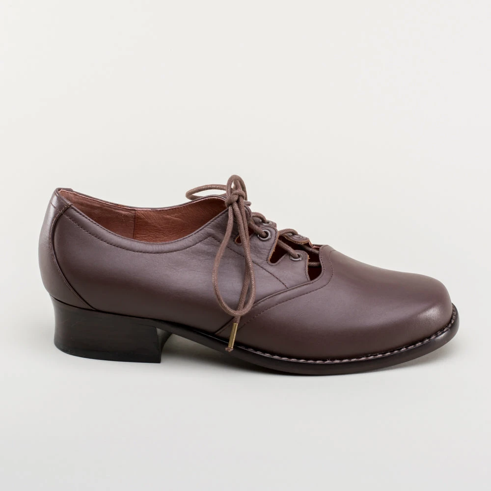 Made in all leather with leather soles, the Ghillies come with two sets of laces for different looks. A sculptural, round toe is paired with our stable 1.25 inch / 3.2 cm heel. These are an all-day every-day shoe offering an elevated and unique look perfect for the 1930s through the 1960s.