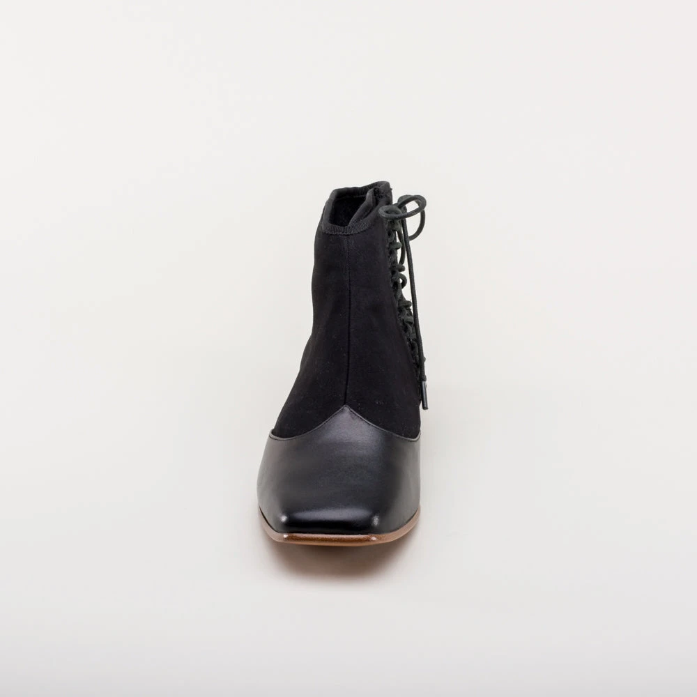This popular style of Victorian ankle boot is made of a refined yet sturdy cotton sateen upper foxed with smooth calf leather on the toes and heels. The side-lace closure, unique to this period, makes it easy to get your boots on and adjusted just as you like. Wear Keckley Victorian boots for both day and evening dress, outdoor or indoor events, or with modern outfits for a secret nod to the past.