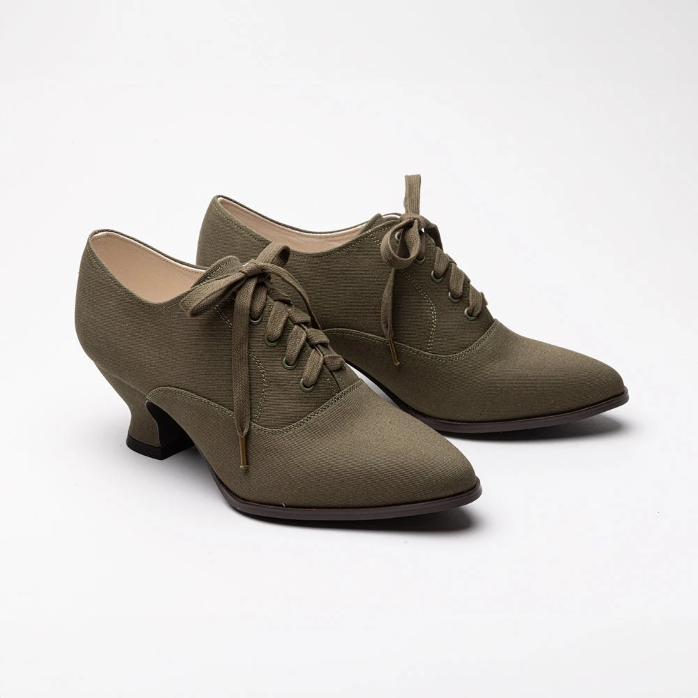 Kedwardians share their last and heel with Bernadette, Gibson, Lucille, and Londoner, and are historically accurate for c. 1900 to 1925. The all-canvas construction makes them flexible and easily broken in. Keep your Kedwardians looking spiffy with Angelus Water and Stain Repellent.