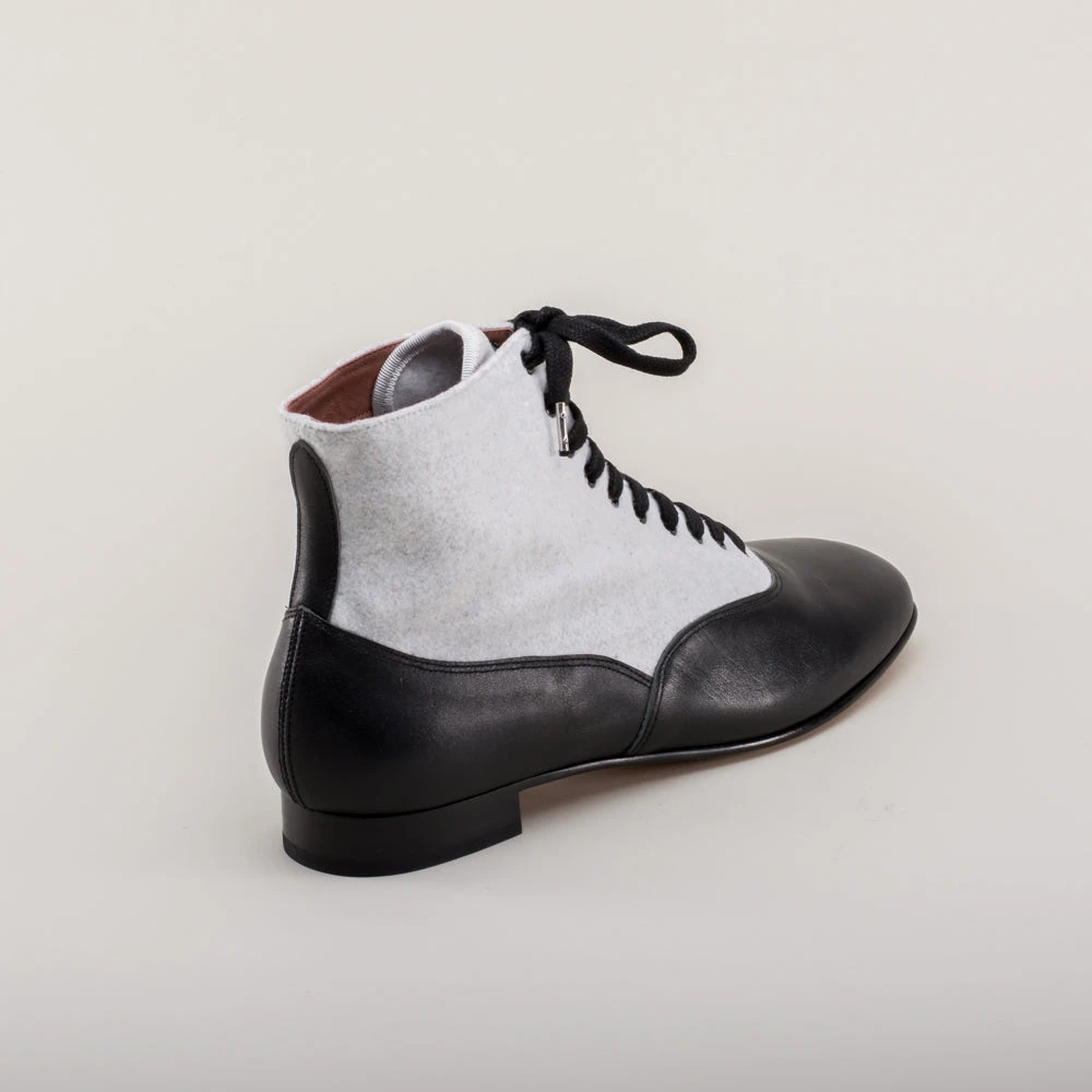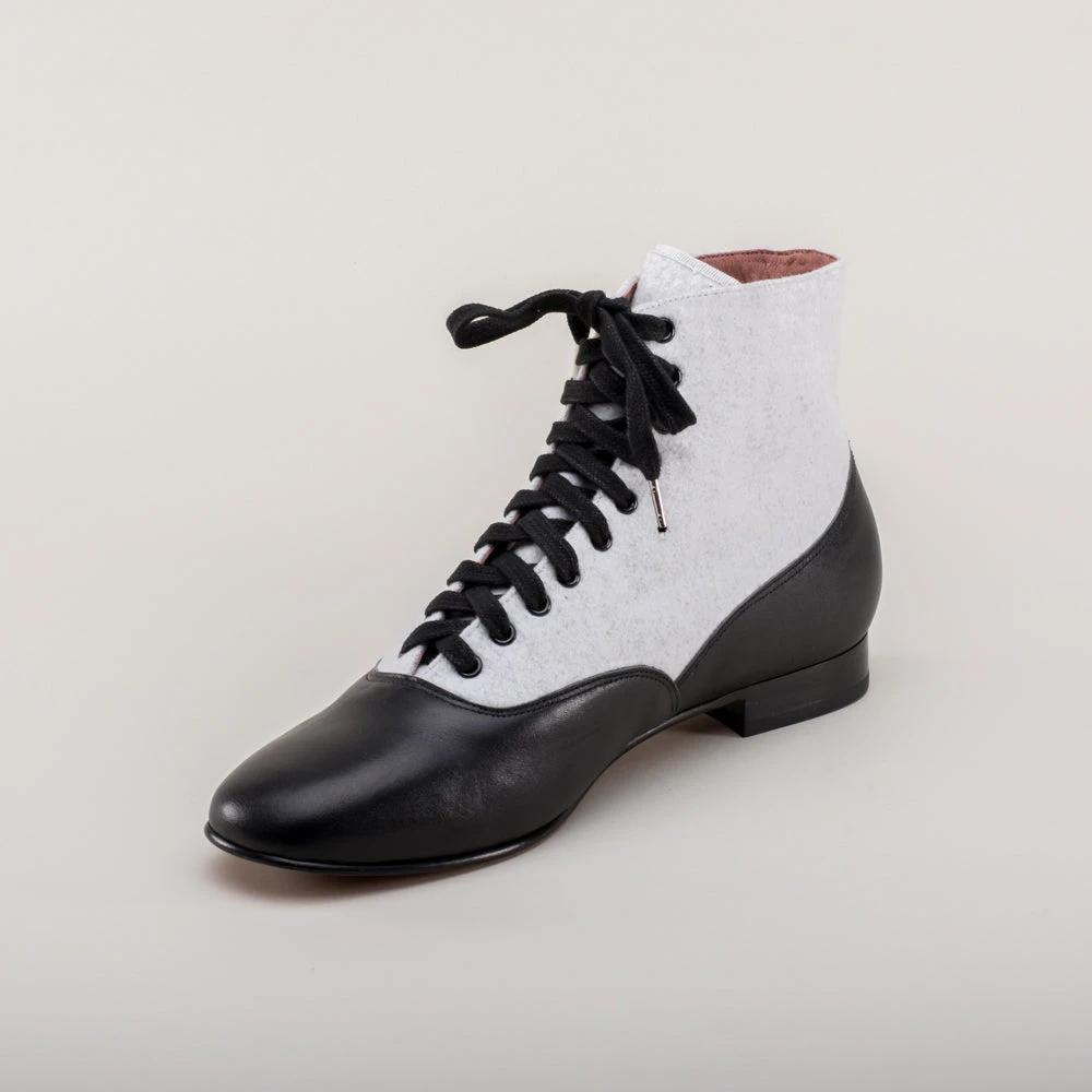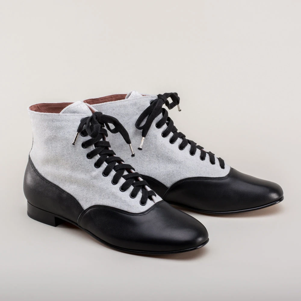 If you could only choose one boot for the broadest period of historic dress, the Larkspurs should be it! This faithful reproduction wool and leather bootie is accurate for a staggering 130+ years, from c. 1810 all the way through the 1930s.