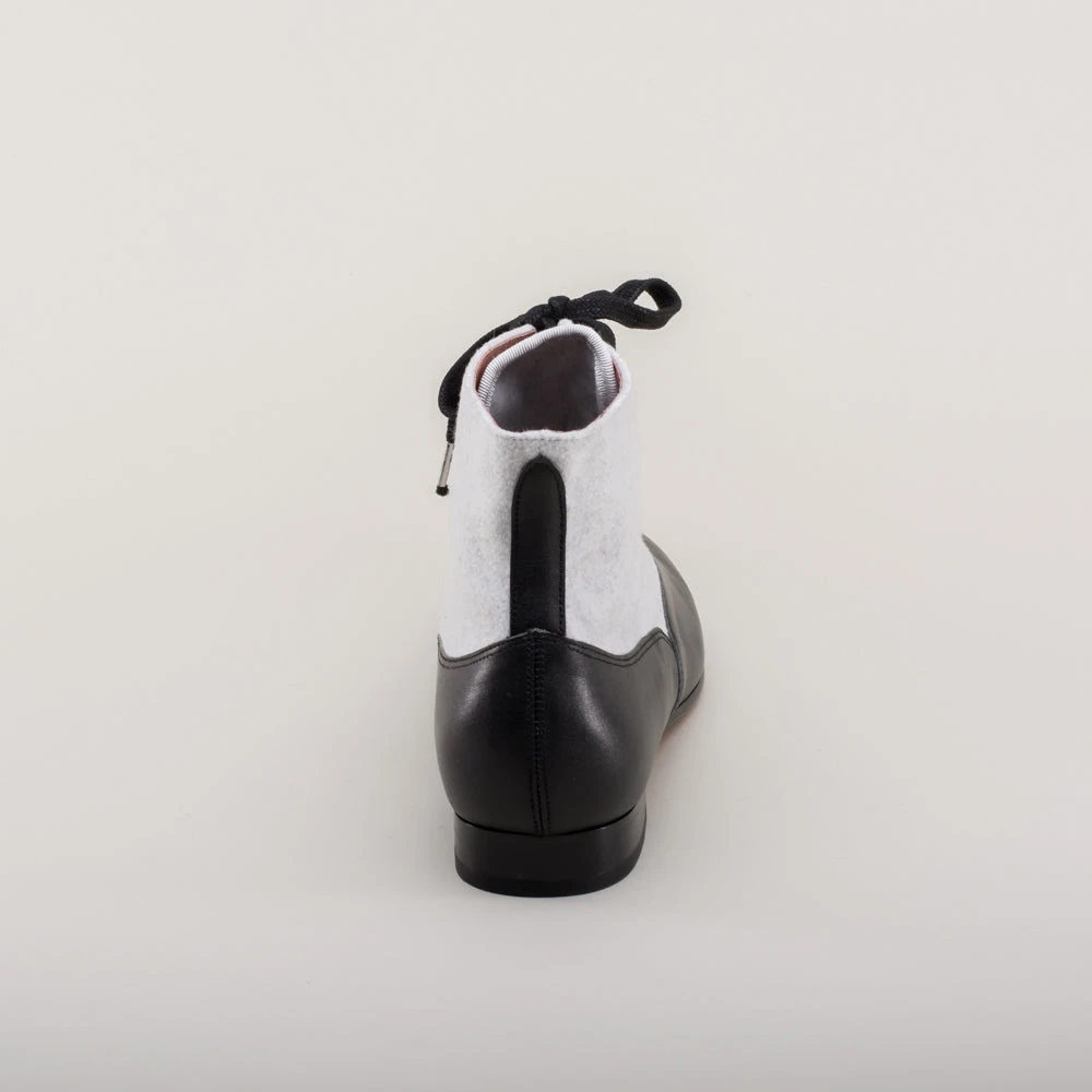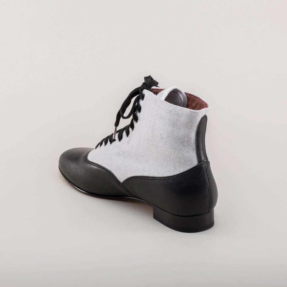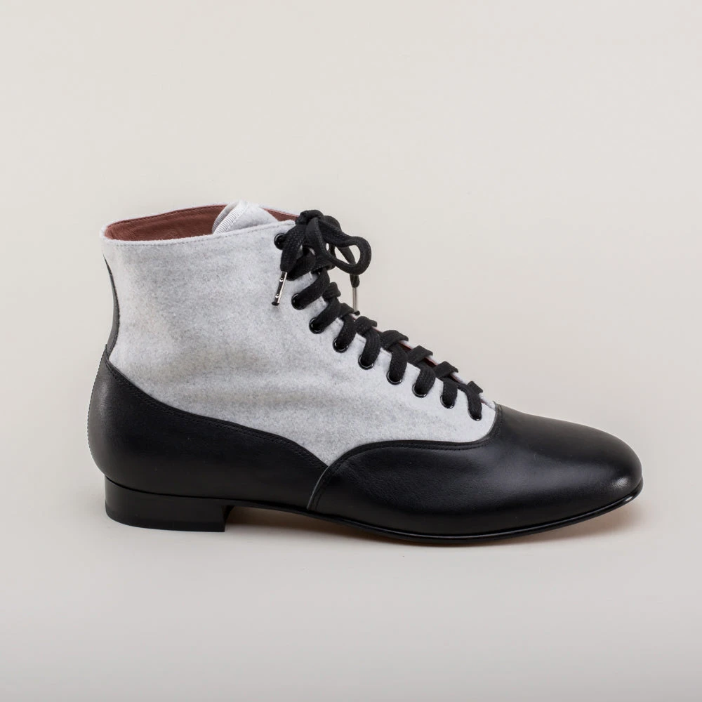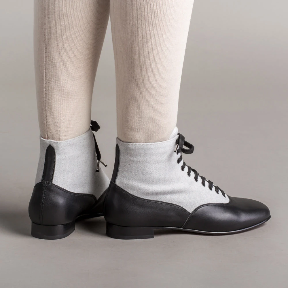 If you could only choose one boot for the broadest period of historic dress, the Larkspurs should be it! This faithful reproduction wool and leather bootie is accurate for a staggering 130+ years, from c. 1810 all the way through the 1930s.