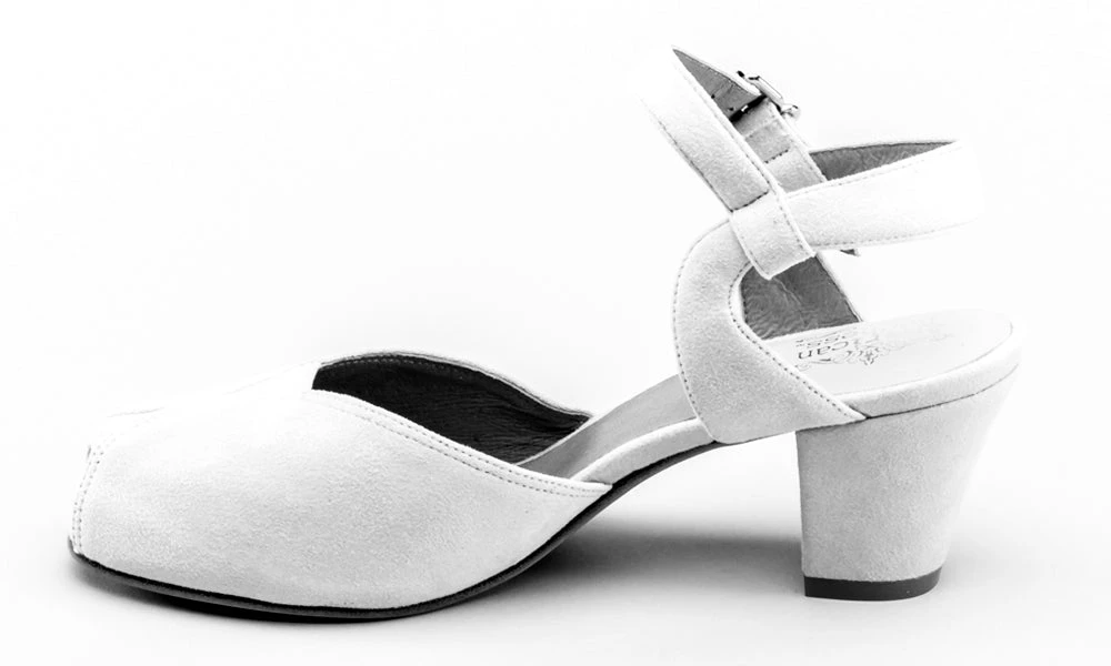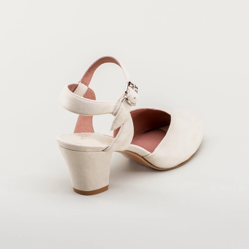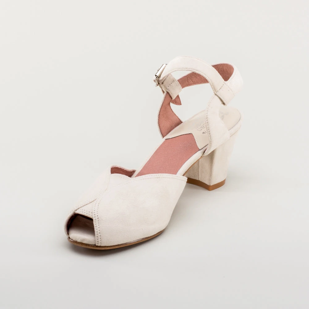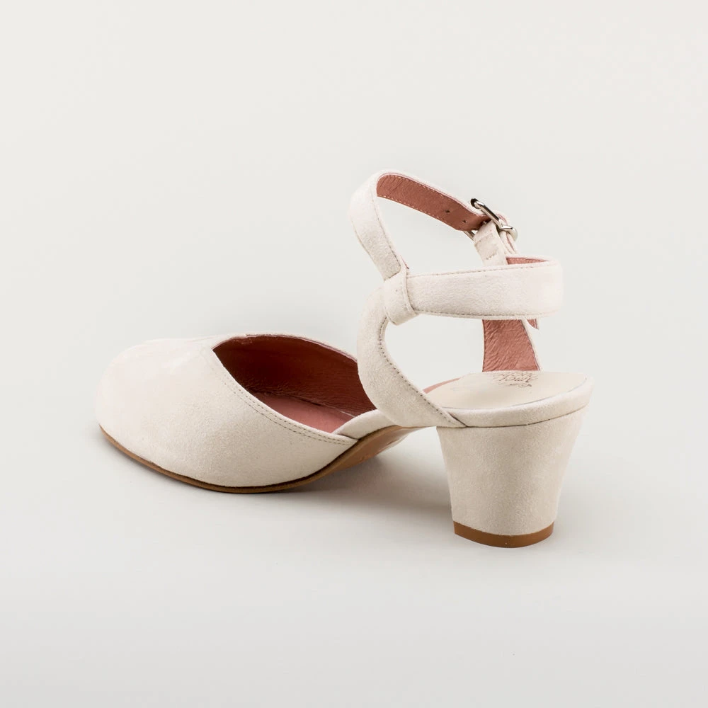 If you’re looking for the perfect vintage sandal, look no further than Lido. These pretty and practical shoes are closely based on an original late 1940s to early 1950s faux suede sandal in our collection. The design is perfectly balanced, made in a durable everyday material, with secure buckle straps and a tiny peep toe, making the Lidos perfect for dancing, walking, and lounging.