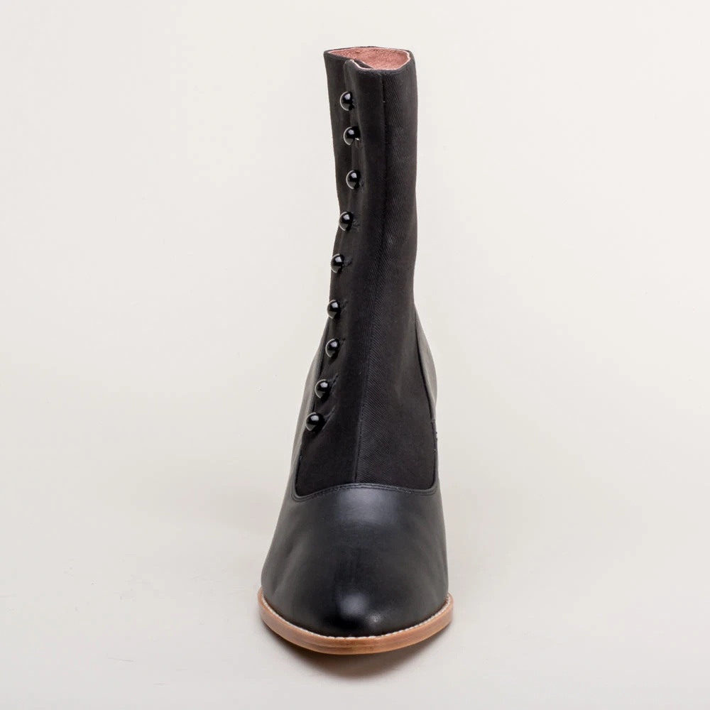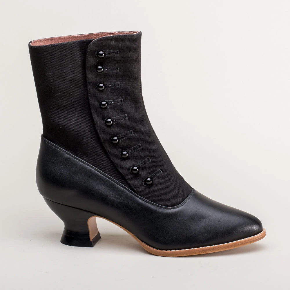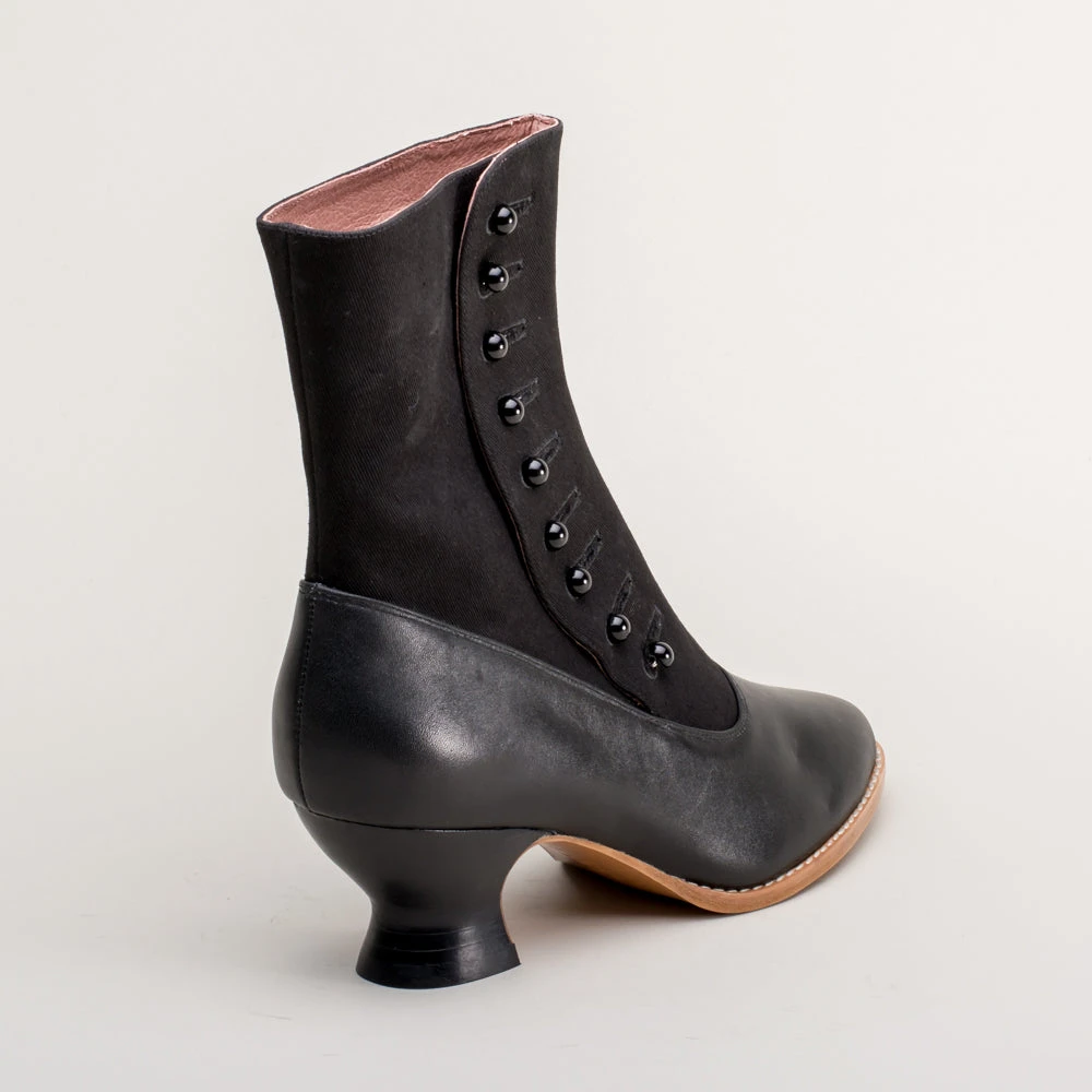 Manhattan Victorian Cloth-Top Button Boots are based on original antique button boots in museum collections and our own archive of historic footwear. They feature true historical functionality with a 9-button closure paired with cotton canvas uppers and French heels for a snazzy look.