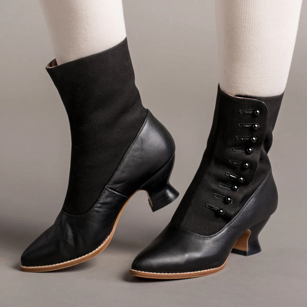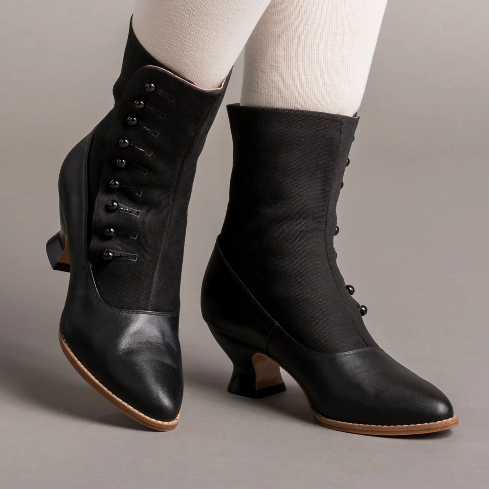 Wear Manhattan button boots with late Victorian and Edwardian attire, be it historical, cottagecore, dark academia, or historybounding. Manhattans are accurate for the 1890s all the way through to about 1925.