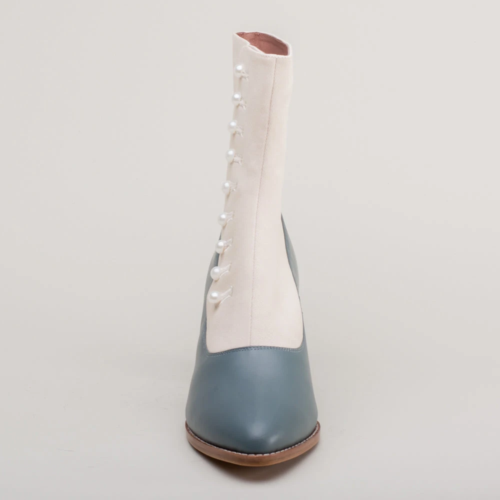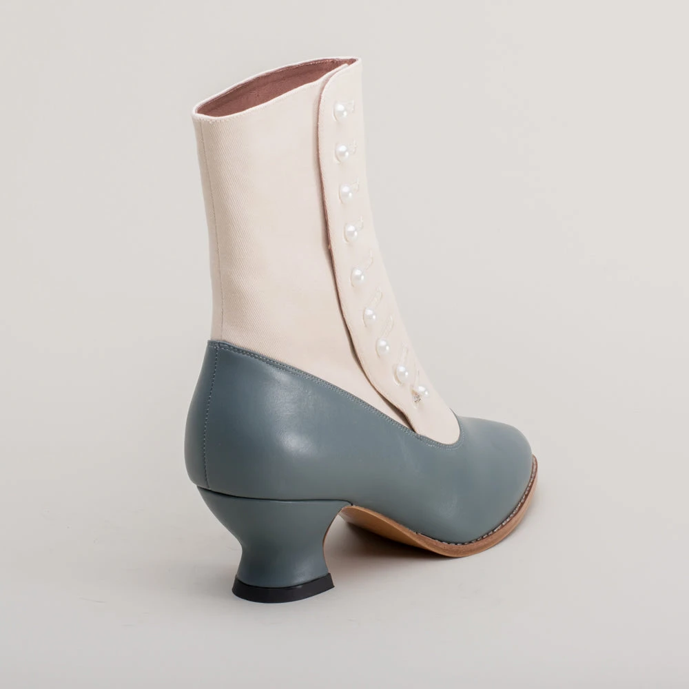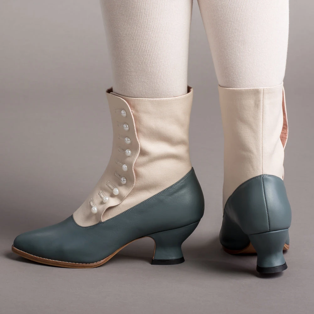 Manhattan Victorian Cloth-Top Button Boots are based on original antique button boots in museum collections and our own archive of historic footwear. They feature true historical functionality with a 9-button closure paired with cotton canvas uppers and French heels for a snazzy look.