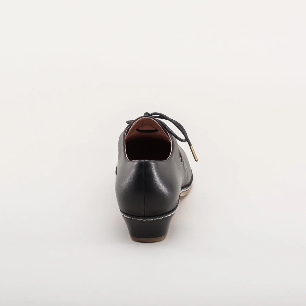 - 1 inch / 2.5 cm leather covered wood heels