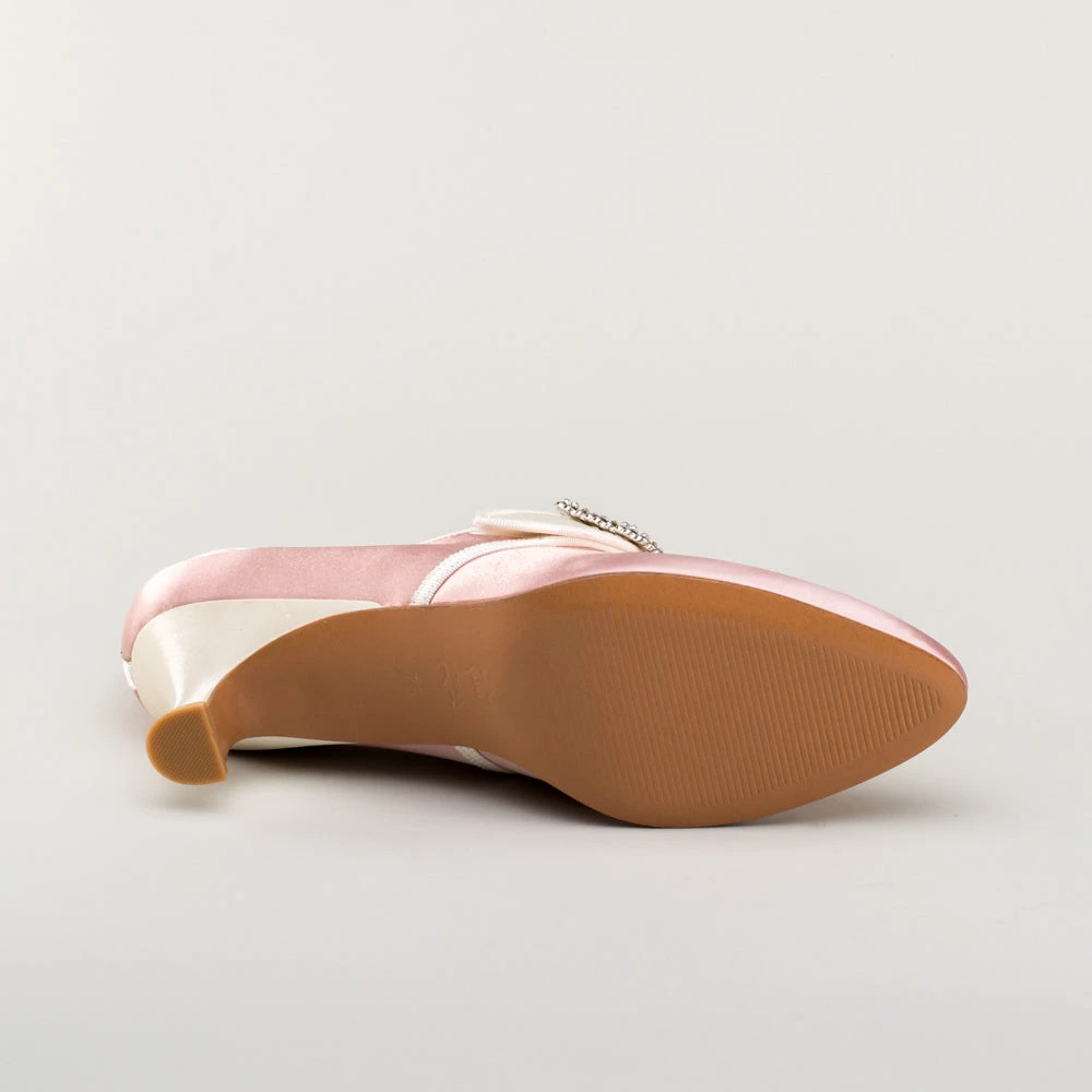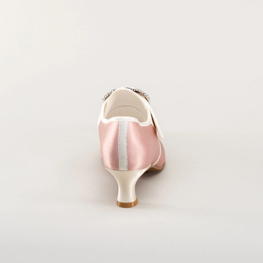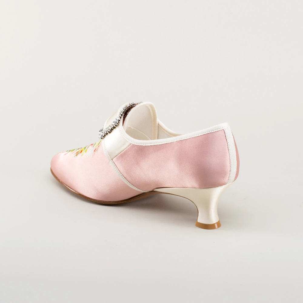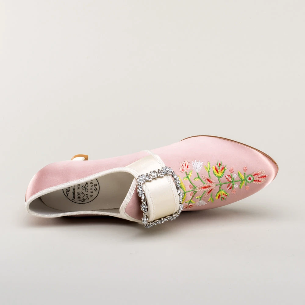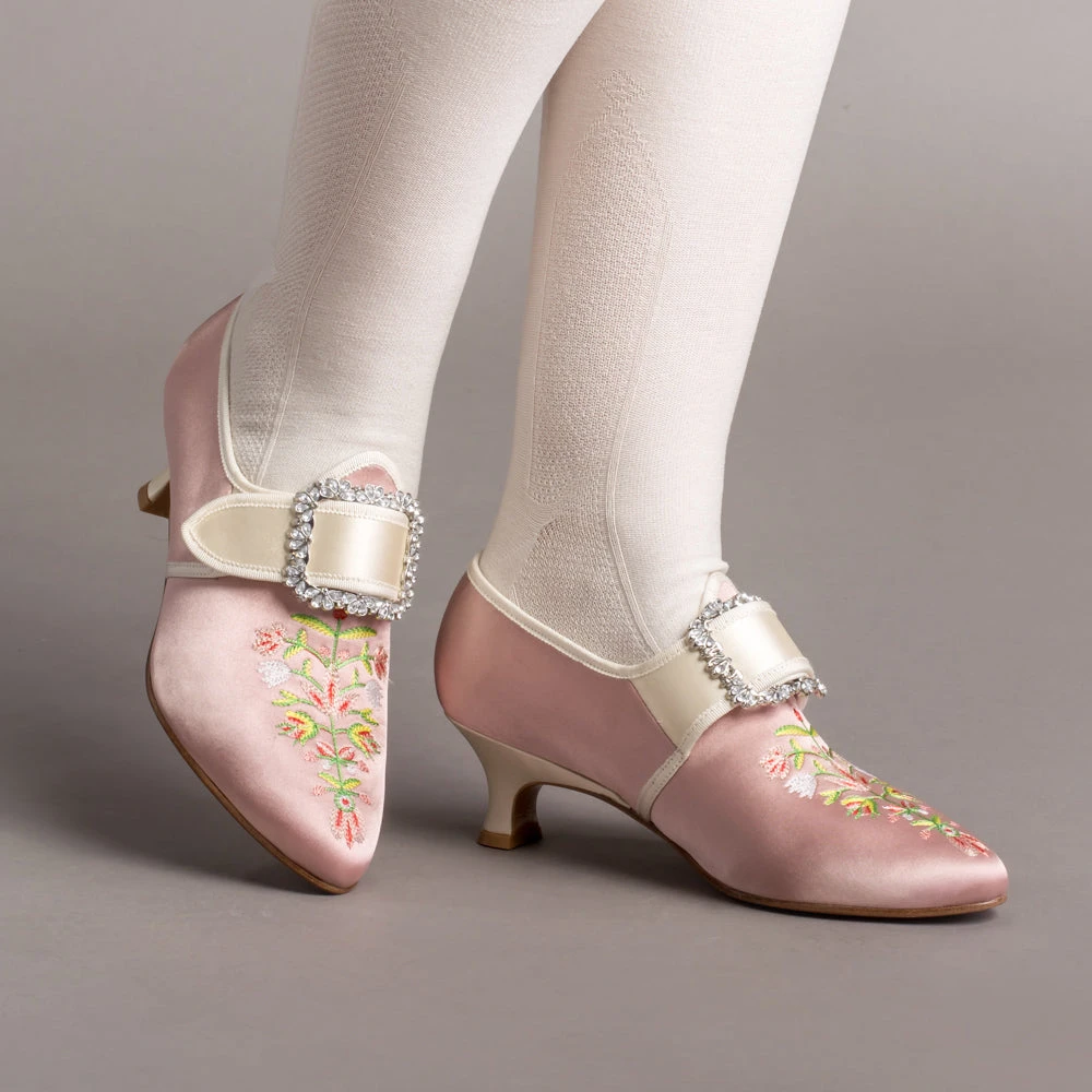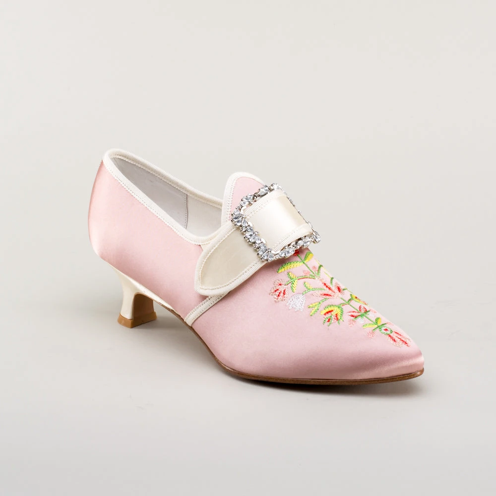 Step back in time with the delicious Primrose 18th century shoes. This authentic embroidered satin design has been recreated in collaboration with The Bata Shoe Museum, capturing the look and feel of the original shoes from 1770s-1790s. Made on the Dunmore last and 2 inch / 5 cm heel, you can be sure that style doesn’t mean sacrificing comfort.