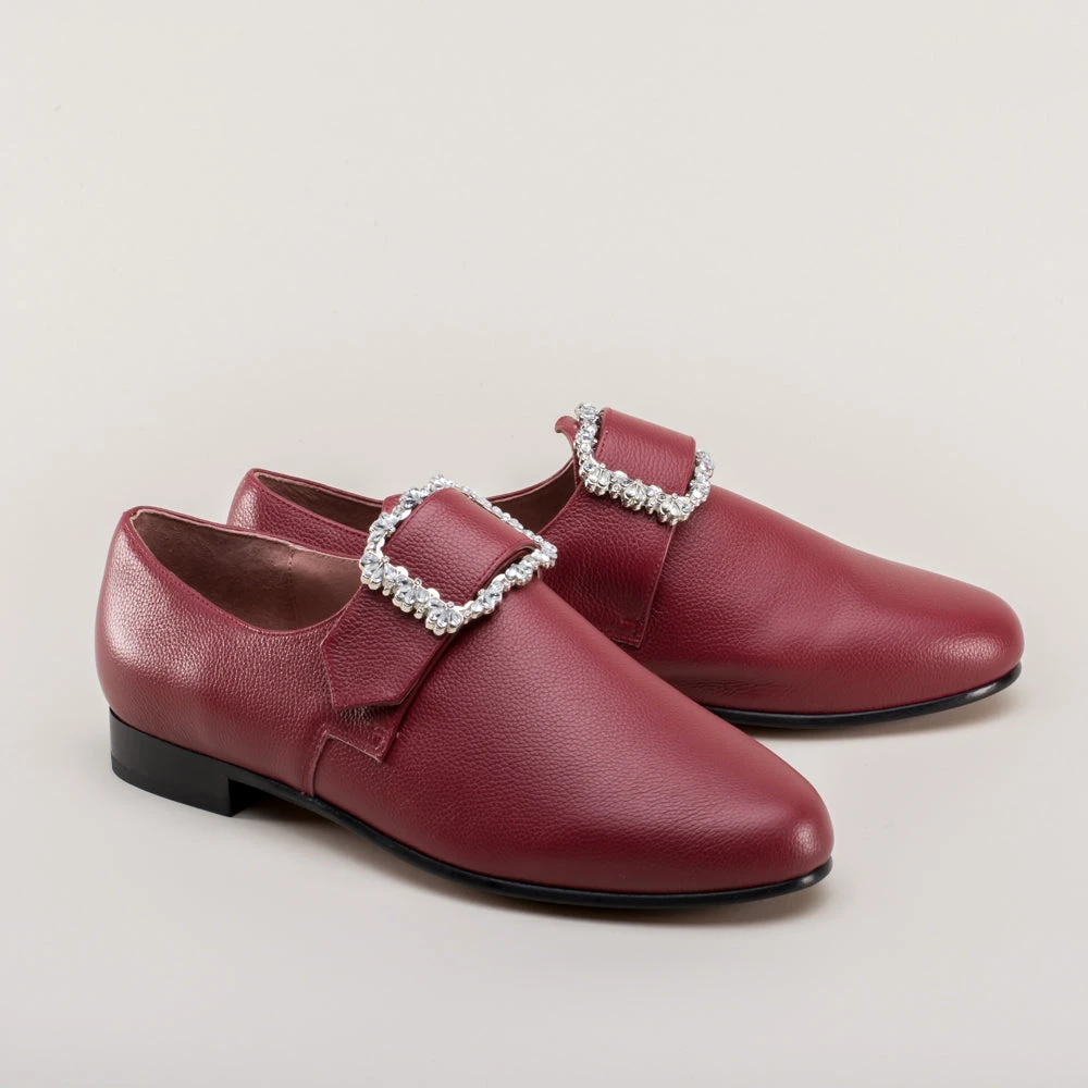 Schuyler 18th Century Shoes does not come with buckles. Choose from a variety of styles and bling available in our accessories section.
