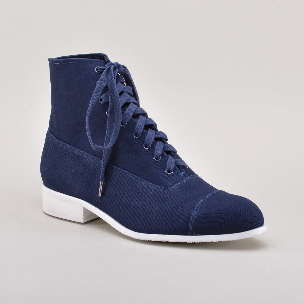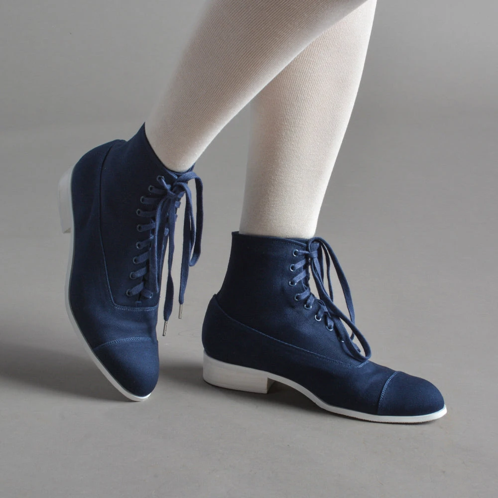 Meet Watson, the ideal Edwardian sporting boot. Based on original period examples, Watson features all-canvas uppers and linings, and a treaded rubber sole. Perfect for all-day wear, Watson is easy to break in, flexible, and extremely comfortable. Watson is fitted throughout the ankle and has a relaxed ball-of-foot, an adjustable lace-up instep, and sports a 1 in/2.5 cm leather-wrapped heel. Watson shares a last with Rainey Boots and is historically accurate to c. 1900-1920.